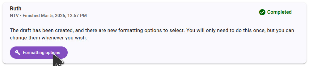 Once you have selected your formatting options, click "Save" to save the options to your project. These options will be used for all future drafts generated for the project. You can change these options at any time, and they will be applied to all future drafts.