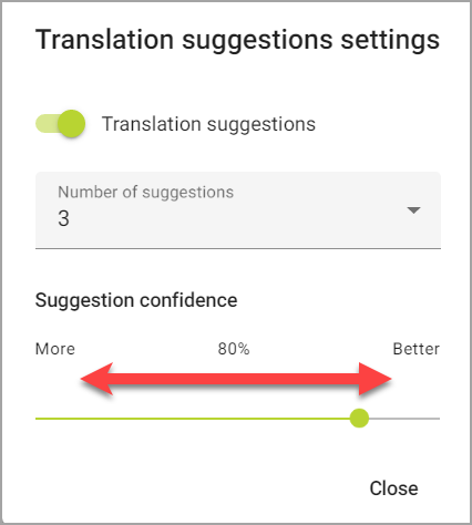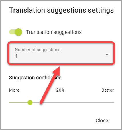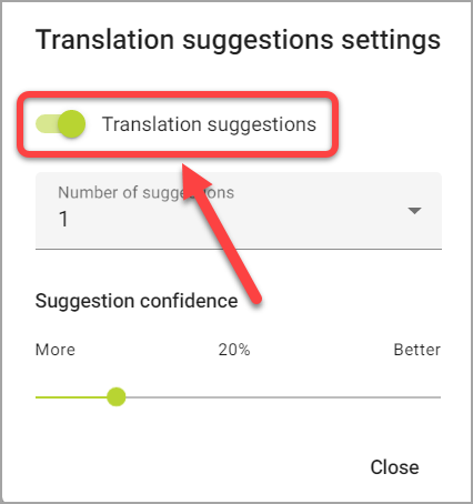 Aparecerá el cuadro de diálogo Configuración de las sugerencias de traducción: