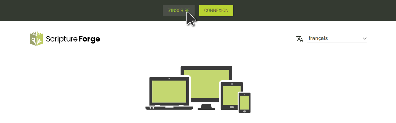 - Si vous avez déjà une inscription à Paratext (ou si vous avez créé un compte Scripture Forge), cliquez sur le bouton "Connexion" :